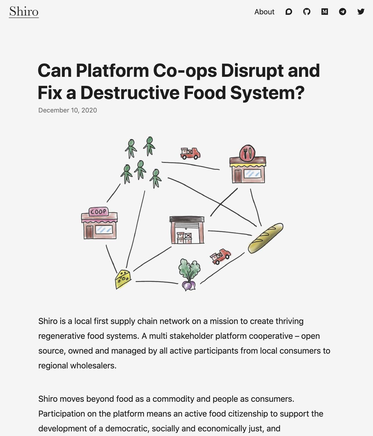 Shiro is a local first supply chain network on a mission to create thriving regenerative food systems. A multi stakeholder platform cooperative – open source, owned and managed by all active participants from local consumers to regional wholesalers.